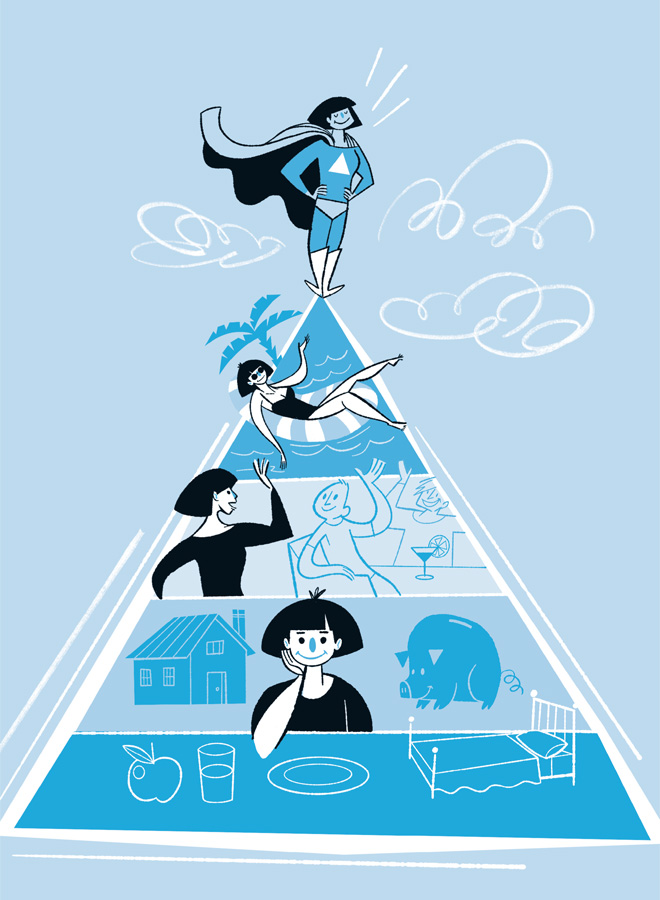 Согласно идее Маслоу, мы в первую очередь заботимся о своем выживании, затем, обеспечив себя пищей, занимаемся собственной безопасностью, после чего задумываемся об общении и так далее.