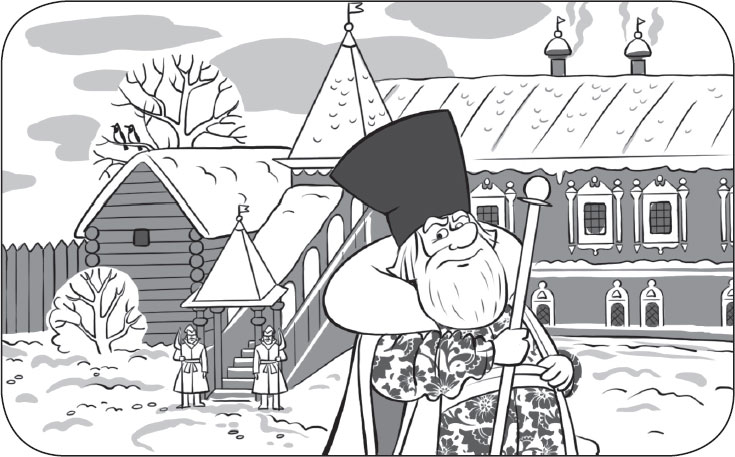Тут на крыльцо вышел хозяин с окладистой (широкой, густой, начинающейся от висков) бородой. Одет он был в широкую и длинную (до колен) рубаху, отделанную красным шелком, золотом и жемчугом, стянутую на поясе шелковым шнуром. Вместо пуговиц – две большие жемчужины. Роскошная одежда указывала на то, что перед Витей стоял боярин. Мальчик знал, что в Русском царстве бояре были самыми богатыми, некоторые из них – даже богаче царя.