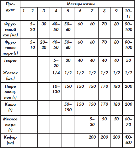 Сроки введения прикорма и количество продуктов для детей первого года жизни
