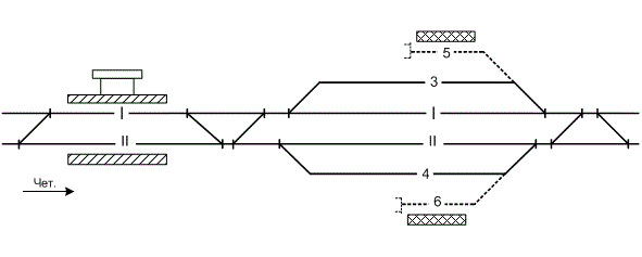 Разъезд (рис. 2.4.) – это раздельный пункт на однопутных линиях, имеющий путевое предназначенное для скрещения и обгона поездов, а в условиях предприятий в необходимых случаях – для выполнения грузовых операций (погрузка-выгрузка в небольшом объеме).