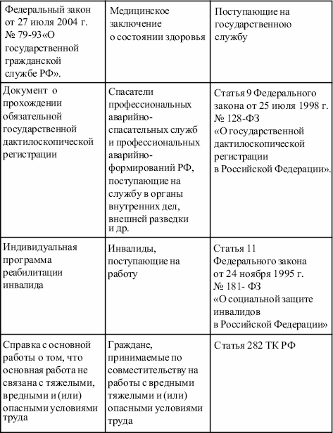 Этот перечень является закрытым, но в некоторых случаях, предусмотренных законодательством, при поступлении на работу необходимо представление дополнительных документов. Так, работодатель вправе потребовать у подростка, не достигшего возраста 18 лет, информацию о состоянии его здоровья. Это объясняется тем, что в данном случае закон допускает существование трудовых отношений только при соответствующем состоянии здоровья, подтвержденном в установленном порядке медицинским заключением (ст. 213 ТК РФ).
