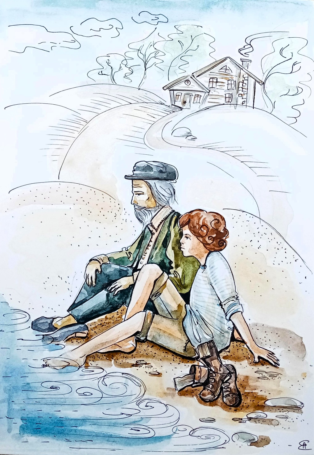 Как же приятно было выбраться из пропахшей насквозь кожей и клеем обувной мастерской на свежий морской воздух. Ветер взъерошил кудри Марко, и мальчик кинулся ему навстречу к пушистым волнам на берег моря. Там Марко увидел незнакомого старика, одиноко идущего неуверенной походкой. Делая очередной шаг, старик неуклюже поставил свою трость, отчего та упала. Бросив свой хлеб прямо на землю, Марко побежал к нему на помощь.