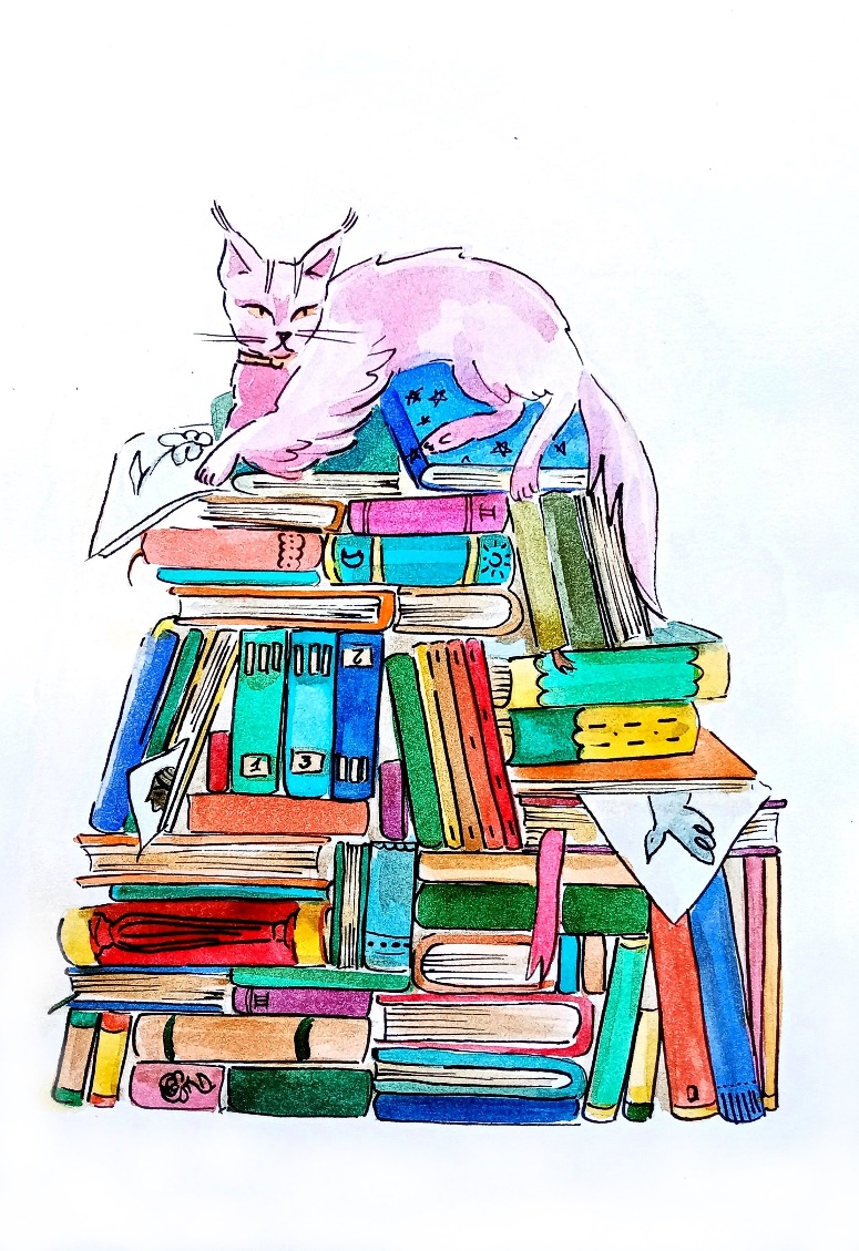 И вот однажды, в особенно жаркий день, в который как бы не хотелось прогуляться, горячий удушающий воздух мог остановить любого, Марко решил провести время в доме. Однако все места, которые он мог осмотреть, уже закончились, да и Монти, в надежде на угощение, сидел подле Долли, выпрашивая её лишний кусочек всякий раз, как та что-то нарезала для обеда. В таком бесцельном времяпрепровождении Марко очутился у комнаты Нины и почувствовал на себе взгляд. То конечно был кот, лежавший на башне из книг.