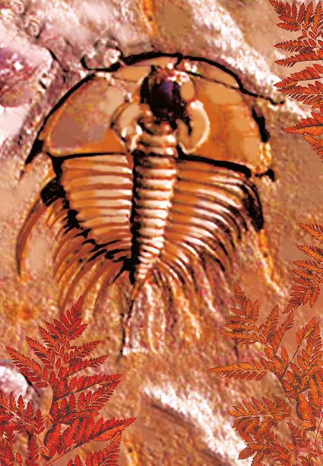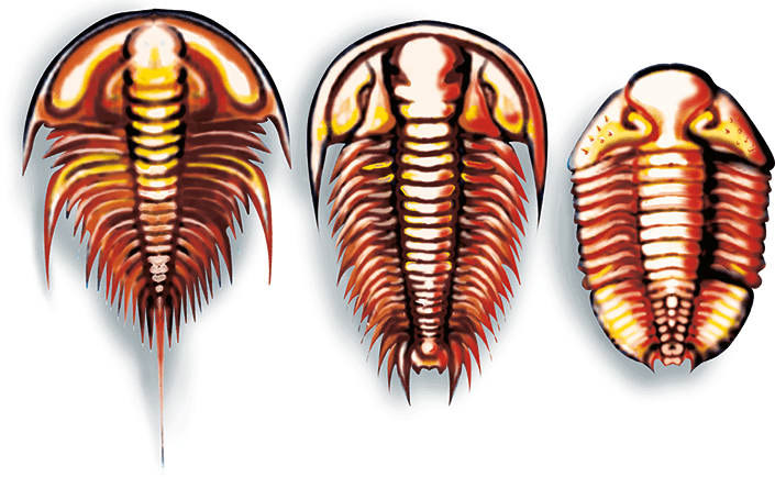 Панцирь трилобита можно поделить на три части – головной щит, туловище и хвостовой отдел. Спинная сторона панциря крепкая и пропитана известью. На нежной брюшной стороне располагались органы движения, питания, дыхания и осязания, то есть конечности, которых у трилобитов насчитывалось несколько десятков.
