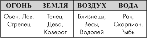 А вот пары Огонь-Вода, Воздух-Земля – непримиримые антагонисты. Однако следует помнить, что это не всегда работает так буквально, поскольку на нас влияют еще и планеты. Когда придет время интерпретации натальной карты, мы увидим, что бывают явные преобладания в карте планет одной стихии. Например, Солнце у вас в знаке Девы, а целых пять планет – в знаках Воды. Отсюда и ваша чувствительность, земному знаку не свойственная. Но тогда для вас смещаются и сочетания знаков в формате «друзья-антагонисты».