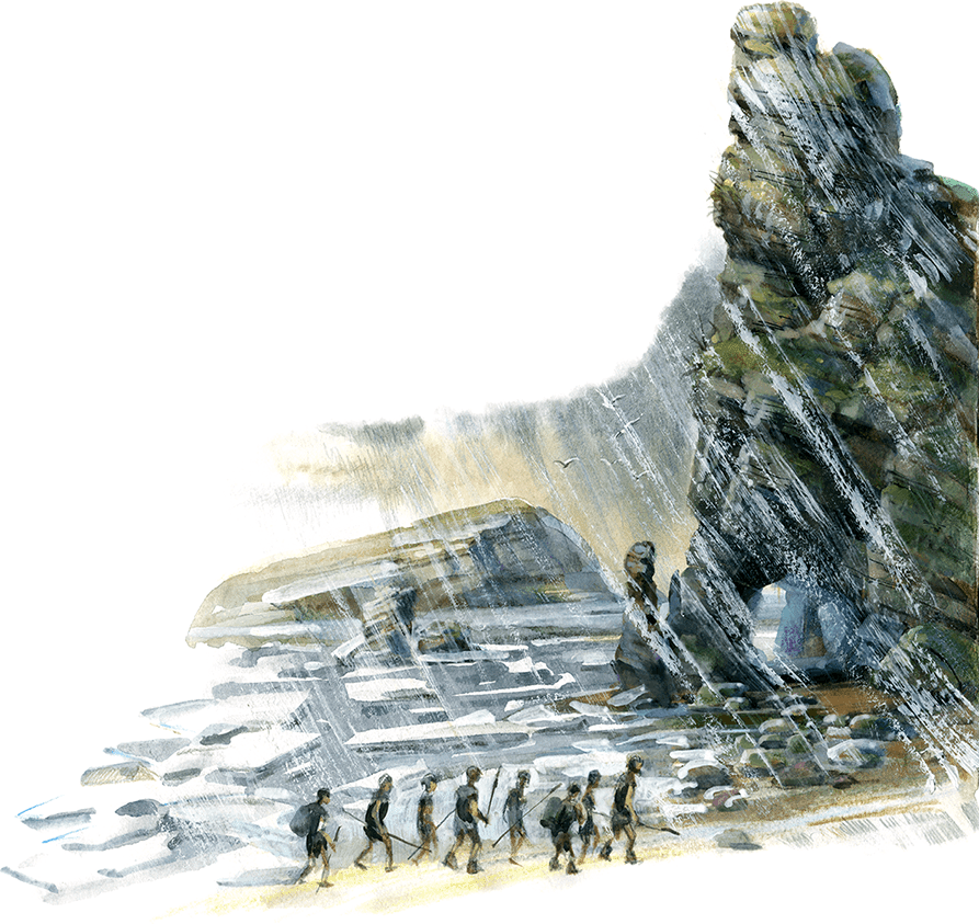 – Что видно сверху? – крикнул старик детям, лежавшим в безопасности на скале, над его головой. – Говори ты, Рюг.