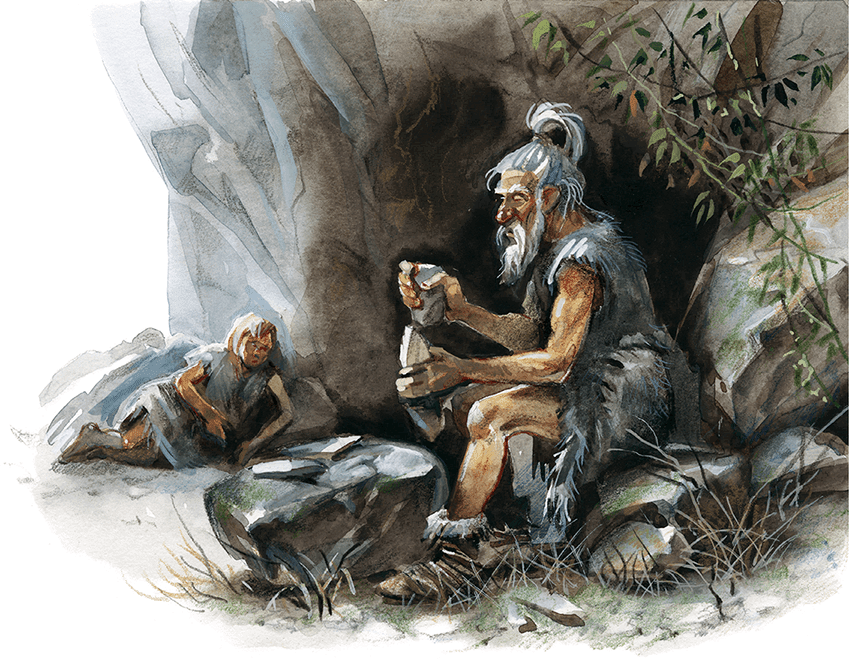 – Вместе с братьями и со мной ты пойдёшь вдоль Белых холмов. Мы запасёмся большими кремнями; они часто попадаются у подножья береговых утёсов. Сегодня я открою тебе секрет, как их обтёсывать. Уже пора, Крек. Ты вырос, ты силён, красив и достоин носить оружие, сделанное собственными руками. Обожди меня, я пойду за другими детьми.