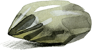 Наконец он выбрал кремень, округлый и длинный, похожий на огурец, и, придерживая его ногами, поставил стоймя.