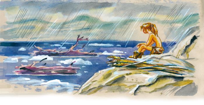 Гель принёс какую-то отвратительную рыбу. Это было всё, что ему удалось поймать после долгих и тяжёлых усилий. Но и эту жалкую добычу встретили с радостью. Её тотчас же разделили и тут же съели: рыбу даже не потрудились поджарить на угольях. Но рыба была небольшая, а голодных ртов много. Каждому досталось по крошечному кусочку.