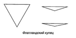 Наши солдаты и представители низших слоев населения имеют форму Треугольников с двумя равными сторонами, каждая из которых имеет в длину около одиннадцати дюймов, и основанием, или третьей стороной, столь короткой (длина основания нередко не превышает половины дюйма), что углы при вершине этих Треугольников необычайно остры и имеют устрашающий вид. В случае вырождения (когда длина основания не превышает одной восьмой дюйма) такие Треугольники чрезвычайно трудно отличить от Отрезков Прямых, или женщин, – столь остры углы при их вершинах. Треугольники с двумя равными сторонами у нас, так же как и у вас, в отличие от всех прочих Треугольников принято называть Равнобедренными. Именно так мы и будем называть их в дальнейшем.
