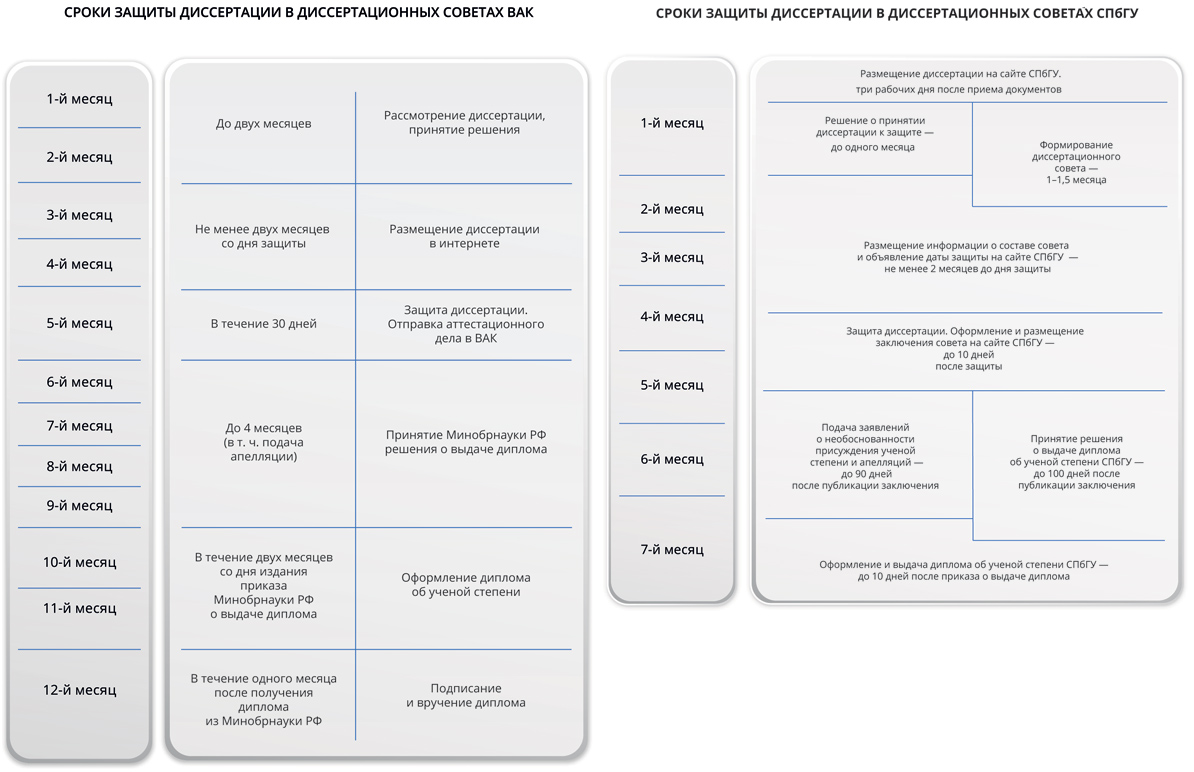 Сравнение сроков защиты диссертации на соискание ученой степени в диссертационных советах СПбГУ и ВАК