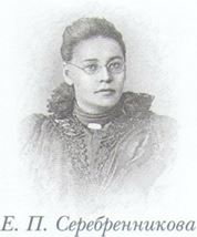 Евгения Павловна Серебренникова (1854–1897) свое первоначальное образование получила в Екатеринбургской гимназии, затем прошла обучение на высших курсах акушерок в Санкт-Петербургской медико-хирургической академии. В 1876 г. вышла замуж за доктора П.Н. Серебренникова. Во время Русско-турецкой войны была сестрой милосердия в военном госпитале. В 1878 г. удостоена за участие в войне знаком Красного Креста и медалью. Е.П. Серебренникова – первая из российских женщин-медиков стала врачом-офтальмологом. Получив после экзаменов в Санкт-Петербурге в 1878 г. звание врача, позже в 1883–1885 гг., специализировалась по глазным болезням у двух профессоров – В.И. Добровольского и И.Х. Магавли. Е.П. Серебренникова прошла врачебную практику в общине святого Георгия на амбулаторных приемах в Санкт-Петербурге. С 1885 г. она – врач-офтальмолог в Пермской губернской Александровской земской больнице. Здесь, по её инициативе, открылось первое в России глазное отделение, которым Е.П. Серебренникова руководила. За медицинской помощью сюда приезжали из многих городов и губерний. Десятки тысяч больных получали облегчение, обретая зрение благодаря многочисленным операциям и лечению. Не успокаиваясь на достигнутом, стараясь принести пользу страждущим, Е.П. Серебренникова совершенствовала свои знания по офтальмологии за границей – в Берлине, в Висбадене, в Париже у известных профессоров в области офтальмологии.
