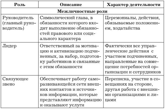 • роли, связанные с межличностными коммуникациями;