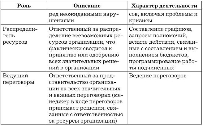 Более подробно роли менеджера в процессе управления описаны в табл. 1.2.