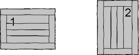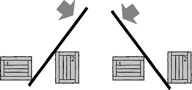 Нуллибер хочет сдвинуть ящик 1 черенком лопаты, как рычагом, воспользовавшись ящиком 2 как точкой опоры. Какой из двух вариантов расположения рычага, представленных на рис. 8, следует выбрать?