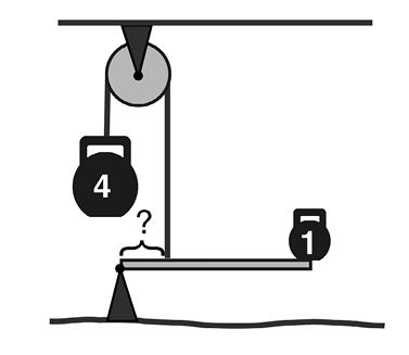 В какой точке нужно привязать трос, чтобы закрепленный на шарнире рычаг (рис. 10) находился в равновесии? (Подразумевается, что точку подвеса блока можно перемещать.)