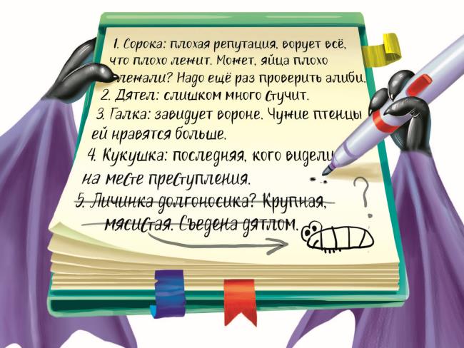 Лесные жители были растеряны и напуганы. И тогда Кишмиш решил взять расследование в свои крылья. У него был в этом деле кое-какой опыт. До того, как поселиться в лесу, он жил в пещере и находил в её лабиринтах потерявшихся туристов. Кишмиш приподнял очки и с прищуром оглядел толпу: