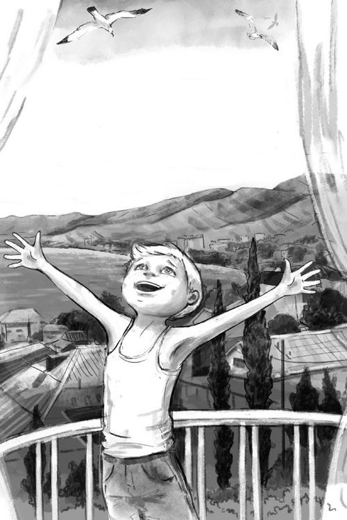 Сашка проснулся оттого, что солнечный зайчик просочился в комнату сквозь плотно задёрнутые шторы. Мальчик скинул лёгкую простыню и прошлёпал на балкон. Солнце уже жарило на полную катушку, поэтому он пританцовывал, спасая голые пятки от раскалённого пола. Наконец Санёк забрался с ногами на пластмассовый стул, такой, как те, что обычно стоят в недорогих курортных кафе, и бесстрашно свесился через перила. Вот оно – счастье, ради которого он вместе с родителями летел ночью на самолёте, потом сонно ехал в душном такси и почти на ощупь заселялся в незнакомую, заставленную чужими вещами квартиру. У Сашкиного счастья был цвет моря – синий с серо-стальными переливам. И запах моря – солоновато-рыбный с нотками варёной кукурузы. И даже музыка моря – громкий плеск волн, крики чаек и восторженные вопли детей.