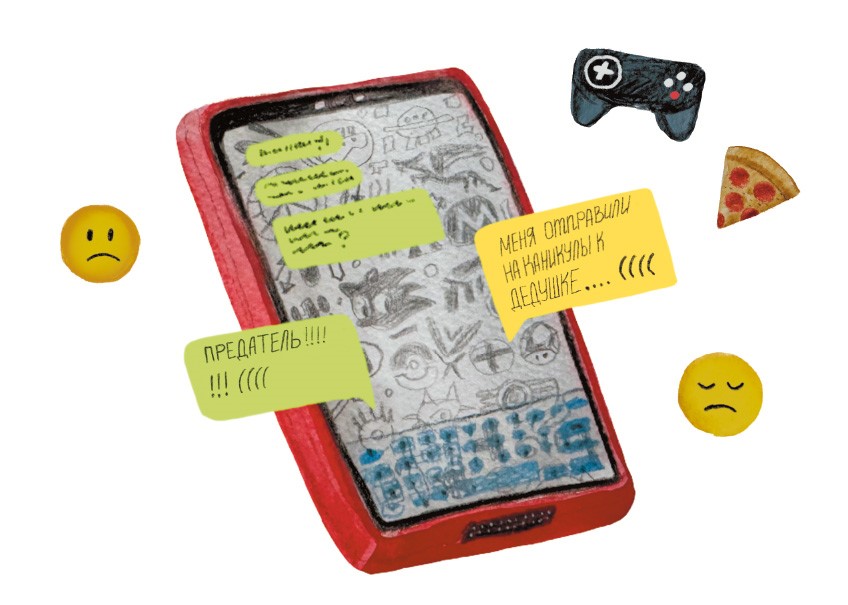 «Мы же договаривались!!! Что устроим на каникулах большую рубиловку! Сам же предложил – поиграем, закажем пиццы?! А потом взял и уехал. Предатель!»
