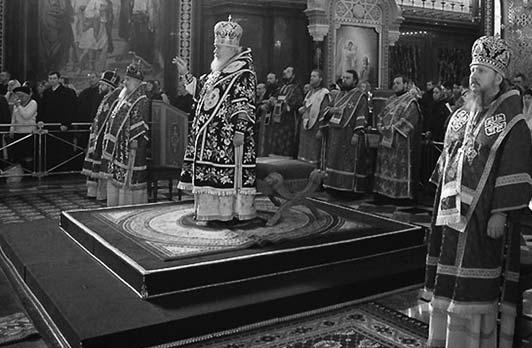 В конце сентября – начале октября 1993 г., во время противостояния исполнительной и законодательной властей, в Даниловом монастыре по инициативе Патриарха Московского и всея Руси и при посредничестве священноначалия Русской Церкви состоялись переговоры представителей противоборствующих сторон, которые, хотя и не привели к соглашению, но способствовали предотвращению полномасштабной гражданской войны. Со времени интронизации Святейшего Патриарха стали регулярно проводиться заседания Священного Синода, на которых решались насущные внутрицерковные проблемы, были созданы новые синодальные отделы и комиссии, способствующие расширению сферы деятельности Русской Православной Церкви: по религиозному образованию и катехизации, по церковной благотворительности и социальному служению, по взаимодействию с Вооруженными Силами и правоохранительными учреждениями, Миссионерский отдел, Церковно-научный центр Русской Православной Церкви «Православная Энциклопедия», Библейская, Богословская, по делам монастырей, по экономическим и гуманитарным вопросам, Фонд по премиям памяти митрополита Московского и Коломенского Макария (Булгакова), Всецерковное православное молодежное движение. За первое десятилетие патриаршества Алексия II число епархий Русской Православной Церкви выросло с 67 до 130, количество монастырей – с 21 до 545, число приходов увеличилось почти в 3 раза и приблизилось к 20 тысячам, количество священнослужителей возросло с 6893 до 19417 человек. За это время в жизни Русской Православной Церкви произошли следующие знаменательные события: обретение и торжественное перенесение в Дивеевский монастырь святых мощей прп. Серафима Саровского, второе обретение мощей свт. Иоасафа Белгородского, чудесное обретение нетленных мощей святого патриарха Тихона, регулярно совершаются богослужения в соборах Московского Кремля, из которых Успенский собор вновь стал патриаршим собором Русской Православной Церкви. Символом возрождения Русской Церкви в 90-х гг. XX в. стало восстановление в Москве Кафедрального Соборного Храма Христа Спасителя.