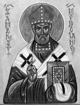 АМВРО́СИЙ МЕДИОЛА́НСКИЙ (340–397) – святитель, родился в Северной Италии в богатой и знатной римской семье. Получив прекрасное юридическое образование, он скоро возвысился и с 370 г. занял должность консульского префекта (правителя) провинций Лигурии и Эмилии. Однажды в Медиолане (современном Милане), главном городе Лигурии, происходили выборы епископа, и между православными и арианами шли горячие споры. Амвросий явился в храм для водворения порядка, и вдруг какой-то голос, как бы детский, прозвучал: «Амвросий – епископ». Народ и сам император Валентин увидели в этом Божие избрание. Напрасно Амвросий, бывший тогда еще в числе оглашенных, готовящихся ко крещению, отговаривался и даже скрылся из Милана. Он вынужден был согласиться на единодушное избрание, принял крещение, в течение восьми дней прошел все церковные степени и был посвящен во епископа (374 г.).