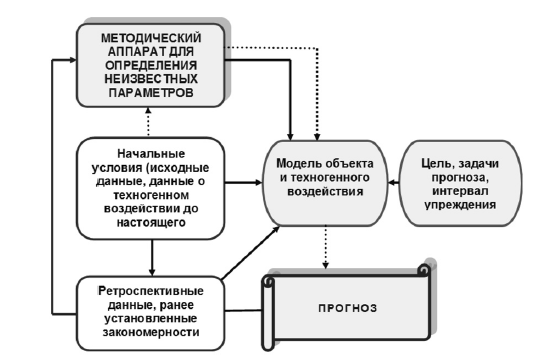 Под прогнозированием техногенных воздействий, связанных с авариями, будем понимать исследовательский процесс, осуществляемый с целью получения вероятностных суждений о возникновении аварии, характере и параметрах сопровождающих ее явлений и воздействий в будущем. Под прогнозной оценкой техногенных воздействий имеется в виду сопоставление прогнозируемых параметров, которыми характеризуются возможность возникновения аварии катастрофического характера и сопровождающие ее воздействия на окружающую среду, с научно обоснованными приемлемыми значениями.