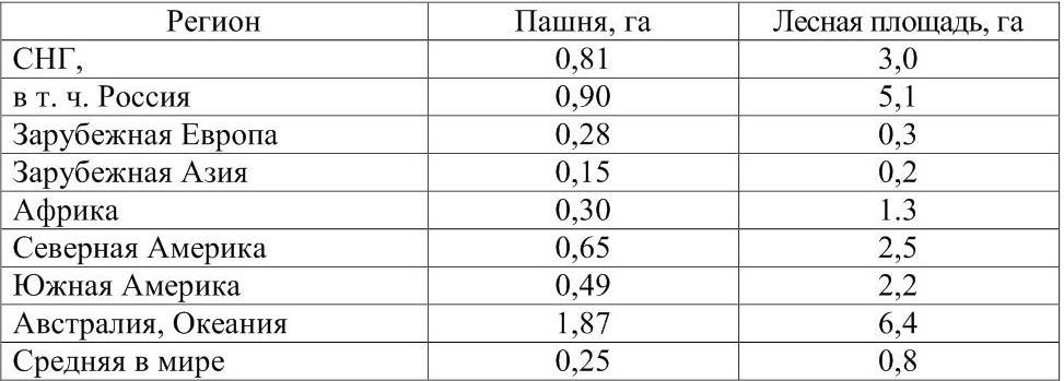 Таблица 2 – Обеспеченность земельными ресурсами в расчете на душу населения