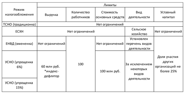 Когда компания на традиционке, у нее отсутствует ограничение вообще: по выручке, численности, стоимости основных средств, видам деятельности и по структуре капитала.