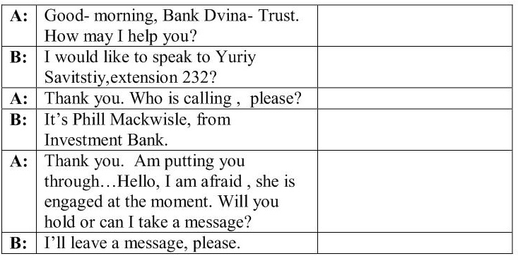 3. You have watched the car accident on TV and want to make sure that your mother wasn't its participant. You call to the company where your mother works, but your mother is a director and very busy, so you have to talk with her secretary.