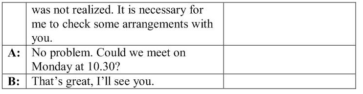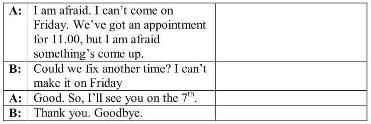 2. You have agreed to make an appointment with your sales manager and have a business talk about new equipment but one of your offices has been robbed recently so you have to meet with police and change your arrangement with manager.