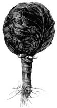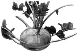 Среди быстро созревающих форм капусты интересен вид кольраби (рис. 6), у которой в пищу используется разросшаяся часть стебля, так называемый стеблеплод. Она бывает белой, светло-зеленой и фиолетовой окраски. Этот вид особенно широко распространен в Западной Европе. У нас выращивают в основном европейские сорта – Венская белая и Оптимус синий.