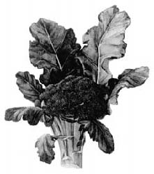 Головка брокколи или спаржевой капусты, как ее еще называют, тоже представляет собой соцветие недоразвитых цветочных бутонов. Она похожа на цветную капусту, но имеет зеленую или фиолетовую окраску и ворсистую поверхность. Головки этого вида капусты образуются и созревают быстрее, чем у цветной, к тому же при срезке центральной головки начинают формироваться боковые. Брокколи достаточно жаростойка и завязывает головки даже в сухое и жаркое лето. По химическому составу она не уступает цветной капусте, богата каротином (провитамин А) и является лекарственным растением. Брокколи предупреждает сердечно-сосудистые и нервные расстройства.