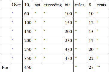 “Single Letter conveyed by land for any distance not exceeding 10 miles, 6 cents.