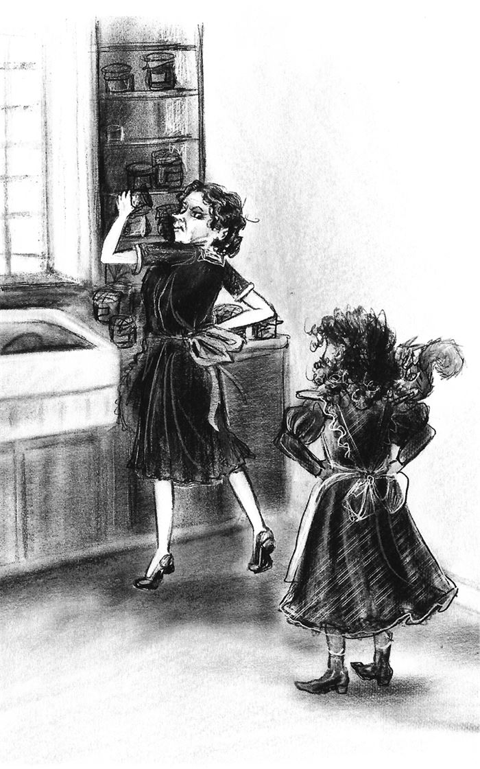 Миссис Снид расставляла банки по полкам – полкам над той самой раковиной, которая когда-то служила Талли постелью. Она спала там почти десять лет, согреваясь лишь потрёпанным старым одеялом. Всё это время миссис Снид и мистер Буд помыкали ею, заставляя делать всю чёрную работу в поместье. Хвостик забрался к ней на плечо и встал на задние лапки, сложив передние.