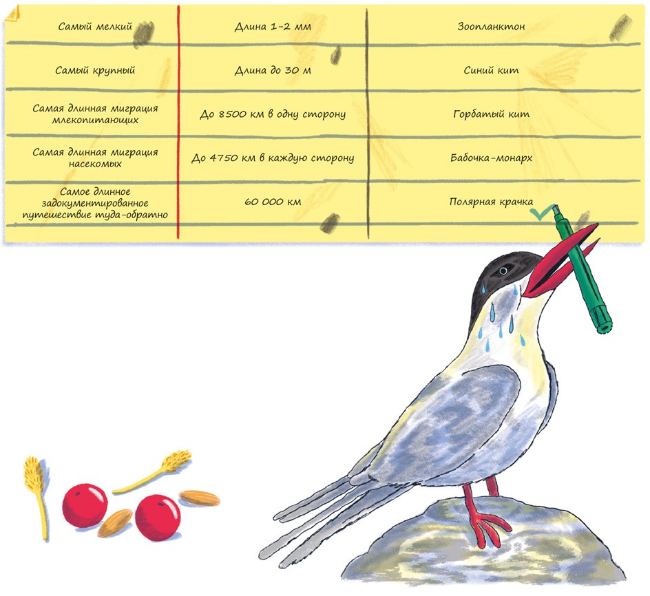 Антилопы гну следуют за дождями и меняют направление в зависимости от того, где больше всего пастбищ. Многие птицы перелетают из Европы за тысячи километров – в Африку, где вдоволь насекомых и ягод.