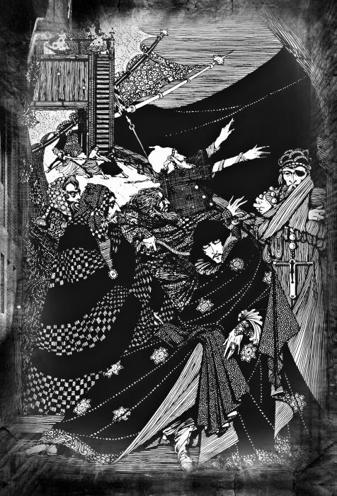 Была ночь, необыкновенно мрачная. Большие часы на Пьяцце* возвестили своим звоном пятый час итальянского вечера. Сквер Колокольни* был безмолвен и пустынен, и огни в старом Герцогском Дворце* быстро погасали. Я возвращался домой с Пьяцетты* по Большому Каналу, но, когда моя гондола была против устья канала св. Марка, женский голос из его углублений внезапно ворвался в ночь, безумным, истерическим, продолжительным криком. Я вскочил, пораженный этим криком; а гондольер, выпустив весло, потерял его в непроглядной тьме, и, не имея никакой надежды найти его, мы были предоставлены течению потока, вливающегося здесь из Большого Канала в меньший. Как некий огромный чернокрылый кондор, мы медленно устремлялись теперь к Мосту Вздохов, как вдруг тысячью факелов, вспыхнувших в окнах и по лестницам Герцогского Дворца, этот глубокий мрак был сразу превращен в синевато-багровый неестественный день.