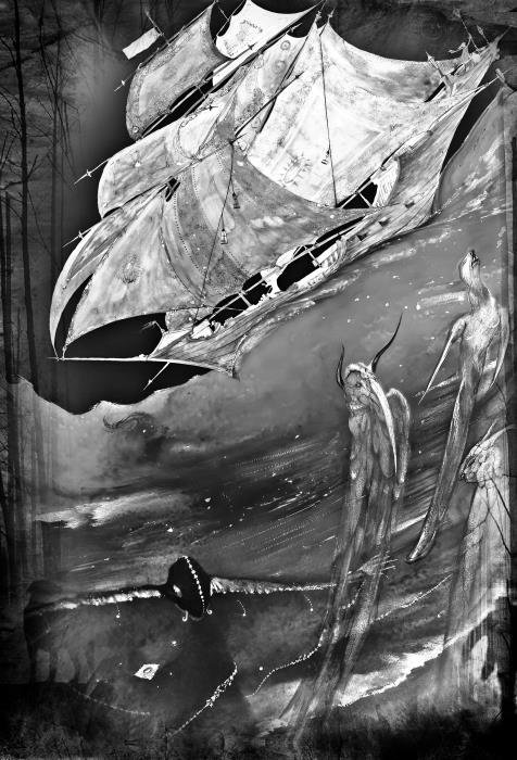 * * *Около часа тому назад я дерзнул войти в толпу матросов, находившихся на палубе. Они не обратили на меня никакого внимания, и, хотя я стоял среди них, в самой середине, они, казалось, совершенно не сознавали моего присутствия. Подобно тому старику, которого я впервые увидал в трюме, все они носят на себе печать седой старости. Их слабые колени дрожат; их согбенные плечи свидетельствуют о престарелости; их сморщенная кожа шуршит под ветром; их голоса глухи, неверны и прерывисты; в их глазах искрится слезливость годов; и седые их волосы страшно развеваются под бурей. Вокруг них, на палубе, везде разбросаны математические инструменты самой причудливой архаической формы.