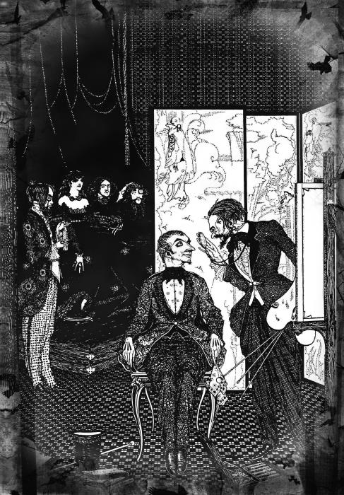 На столе передо мной горела лампа, а подле нее лежал маленький ящик. В нем не было ничего особенного, и я часто видал его раньше, так как он принадлежал нашему домашнему врачу; но как он попал сюда, на мой стол и почему я дрожал, глядя на него? Все это оставалось для меня необъяснимым. Случайно мой взгляд упал на развернутую книгу и остановился на подчеркнутой фразе. То были странные, но простые слова поэта Ибн Зайата: «Dicеbаnt mihi sоdаlеs, si sерulсhrum аmiсае visitаrеm, сurаs mеаs аliquаntulum fоrе lеvаtаs». Почему же, когда я прочел их, волосы поднялись дыбом на моей голове и кровь застыла в жилах?