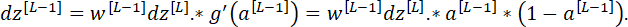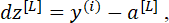 Шаг 2. Используя полученный результат на выходе сети a[L] = hw(i) (x), и необходимое для данного примера выходное значение y(i), рассчитываем ошибку выходного слоя: