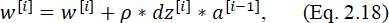 где i – номер слоя сети; ρ – параметр обучения (learning rate) (0 < ρ < 1); Θ(i) – матрица весов слоя i; dz[i] – рассчитанное значение ошибки i-го слоя (точнее говоря, градиент ошибки).