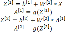 где W[i] – матрица весов i-го слоя нейронной сети; X – матрица обучающих примеров размерностью n x m (n – число параметров, m – количество обучающих примеров).