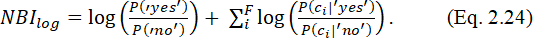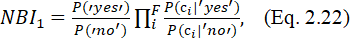 В выражении Eq. 2 величина NBI принимает значения от 0 до +∞. Если NBI < 1, то это свидетельствует в пользу отрицательной гипотезы ('no'). Если NBI > 1, то это свидетельство того, что текущее сочетание условий дает возможность положительного вывода ('yes'). Отметим, что если мы используем выражение Eq. 2, то мы должны примириться с неравновесностью такого вывода.
