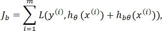 Суть градиентного бустинга, введенного в [[63]], заключается в том, что после расчета оптимальных значений коэффициентов регрессии и получения функции гипотезы hθ(x) с помощью некоторого алгоритма (a) рассчитывается ошибка и подбирается, возможно, с помощью другого алгоритма (b) новая функция hbθ(x) так, чтобы она минимизировала ошибку предыдущего: