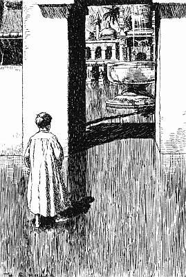 Вокруг стояла великая тишина, которая успокаивала и убаюкивала, и вскоре он поднялся и огляделся. Он подошел к арке с очень толстыми колоннами и осторожно заглянул внутрь. Казалось, это были огромные ворота, ведущие на открытое пространство, а за ними виднелись неясные очертания, похожие на церкви и дома. Но все было пустынно; лунный свет и он были в этом месте, чем бы оно ни было, сами по себе.