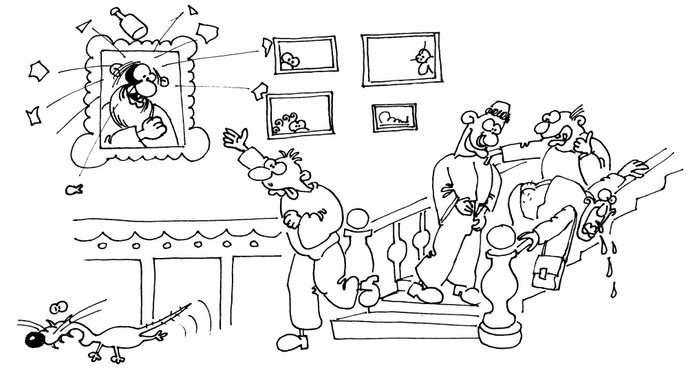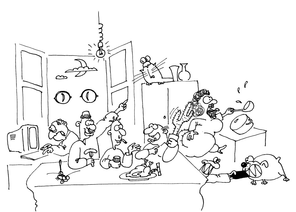 В это время в комнате вдруг как-то резко похолодало, а собаки вскочили и контрреволюционно залаяли. Кот на шкафу зашипел необычным способом. Негр перестал улыбаться. Это странное изменение внешней среды быстро прошло и мы снова наполнили стаканы. Хозяйка Валя захлопнула случайно открывшуюся форточку.