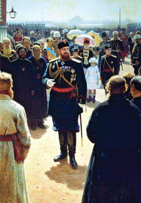 Прием волостных старшин императором Александром III во дворе Петровского дворца в Москве (фрагмент). Репин И. Е.