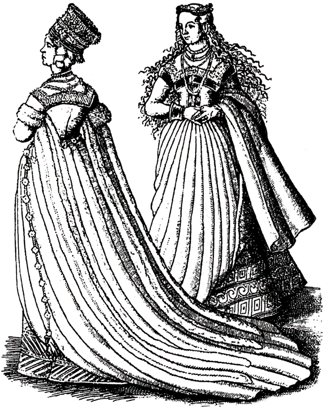 Эпоха Ренессанса отличалась не только чувственностью. Так как речь идет о победе восходящего класса, то она не знала ни лицемерной стыдливости, ни страха, а смело и безбоязненно доводила все свои намерения до крайнего предела. Эта прямолинейность, в свою очередь, приводила к тем особенностям, благодаря которым моды Ренессанса кажутся нам подчас такими чудовищными, причем эти особенности характеризуют одинаково как мужские, так и женские моды. «Я превосходнейшим образом создан для любви», – говорил мужчина женщине при помощи своего костюма. «Я достойный предмет твоей силы», – отвечала она ему не менее ясно при помощи своей одежды. А как предложение, так и ответ отличались в эпоху Ренессанса одинаковой смелостью. Начнем с женской моды.