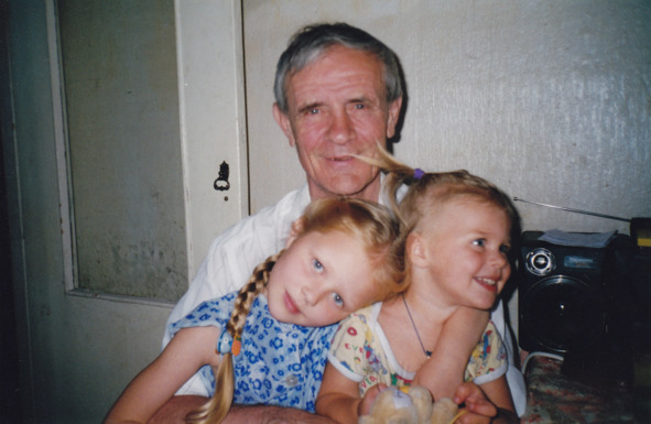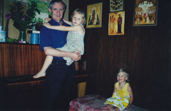 Папа с внучками, лето 2002г