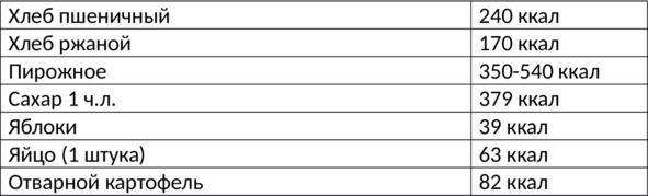 Таблица. Калорийность ряда продуктов на 100,0