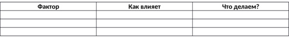 – Для каждого из этих факторов определите вариант минимизации последствий или максимизации выгоды.